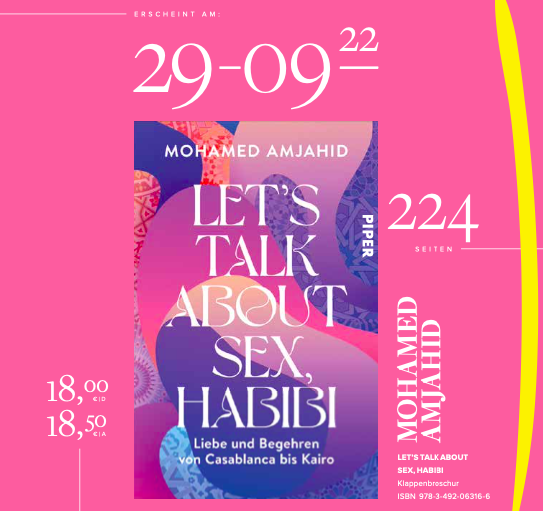 „Let’s talk about Sex, Habibi. Liebe und Begehren zwischen Casablanca und Kairo“ erscheint September 2022 bei Piper und ist hier bestellbar.